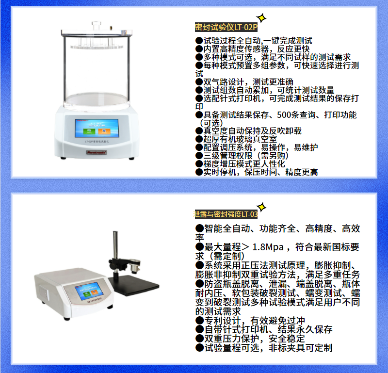 密封測試儀 是用來檢測塑料包裝袋、包裝容器的密封狀況,應(yīng)用于包裝、食品、藥品、日化等行業(yè)。通過試驗可以有效地比較和評價包裝件的密封工藝及密封性能,為確定相關(guān)的技術(shù)指標(biāo)提供