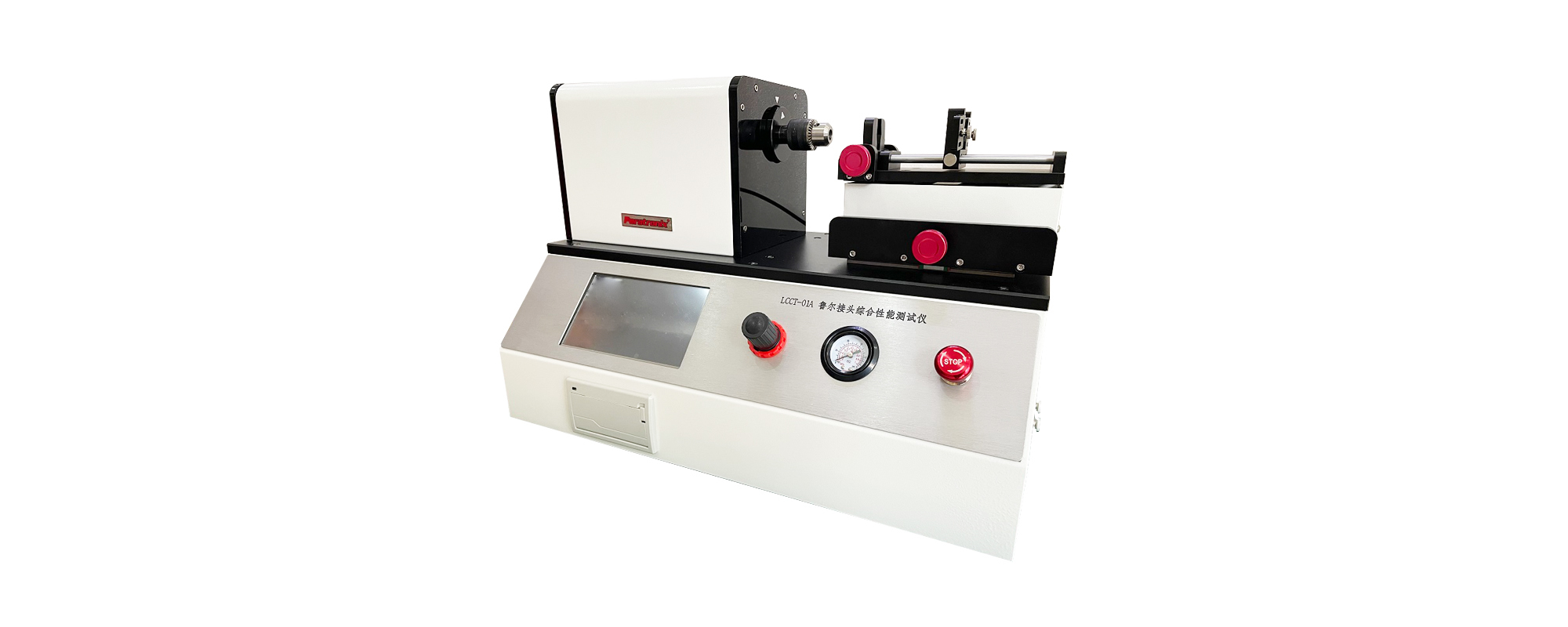 LCCT-01A 型魯爾接頭綜合性能測試儀是根據“GB/T1962.1-2015(ISO594-1:19)(ISO80369)注射器、注射針及其他醫療器械 6%(魯爾)圓錐接頭第一部分:通用要求”中條款設計制造的,專門用于測試圓錐接頭的漏液、漏氣、分離力、旋開扭矩、易裝配性、抗滑絲性、應力開裂等性能的專用測試設備。該設備由智能控制器、液晶顯示屏、步進電機、步進電機驅動器、傳動機構、傳感器、夾具、打印機等組成。采用全中文菜單顯示,用觸摸屏操作,操作更便捷,性能更穩定,設定,實時顯示測試力值,保持時間,具有功能齊全,顯示清晰等優點。